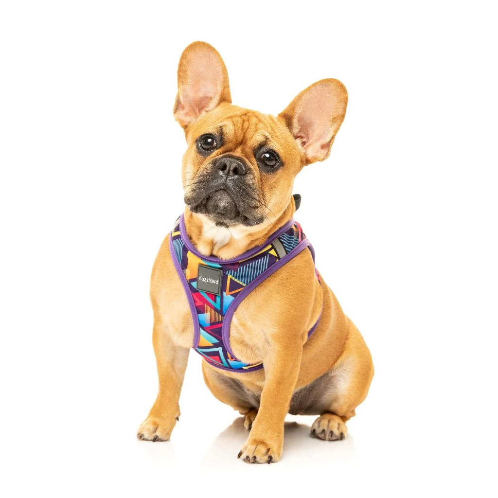 Los arneses para perros FuzzYard son arneses tipo chaleco. Están diseñados para para evitar rozaduras y presión en el cuello del perro, gracias a su cierre con velcro. Al ser Step In su colocación y retirada es muy sencilla, ya que es por las patas. Otra de las ventajas de los arneses para perros step in de FuzzYard es que se ajustan perfectamente al cuerpo del perro. Este tipo de arneses para perros cuenta con un cierre con velcro a la espalda y otro cierre con clic. También tiene incluida una banda reflectante para mayor protección. Este arnés está pensado para la máxima confortabilidad de tu perro gracias un diseño interior acolchado, super suave y resistente. Si buscas el máximo confort para tu perro durante la hora del paseo los arneses FuzzYard step in son una opción genial.